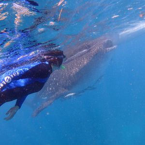 天気にも恵まれ、ジンベイザメさんに沢山会えとても感動しました!ガイドさんが沢山写真も撮ってくださるので大大大満足!!!自分ではなかなか綺麗に撮れないのでとてもありがたいサービスです!そして気づくと真横にいたり間近過ぎてビックリしまくりですよ!はじめお尻をつんつんされて何だろうと振り向くと、なっ!なんと真後ろにジンベイザメさんが!私エサじゃないよーと思いつつ嬉しかったです!笑!触るのはNGだからね、、、。はじめ30分短いなぁと思っていましたが、充分満足できます。