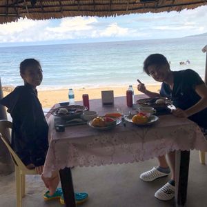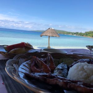 昼食もフィリピン風のBBQでフルーツ付きでした!海際で食べさせていただきました。