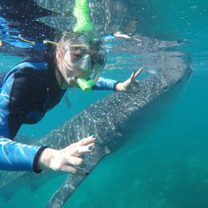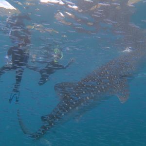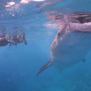 到着すると早速、シュノーケリング。ボートに乗って少し沖まで出て海へダイブ。餌付けされたジンベエザメが手で触れるくらい近くにいて、まさに圧巻の迫力でした。撮影機材は持っていっていませんでしたが、持っていけばと後悔。水中カメラか、iPhoneを防水ケースに入れて持っていけば良かった。