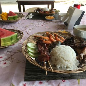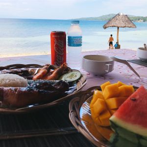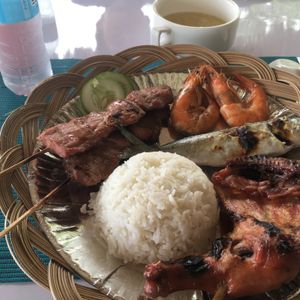 ãªæçãçšæãããŠããŠçŸå³ããã£ãã§ããå€é£ãšæé£ã¯ãã³ãè¿ãã®ããŒãã«ã§ãšããŸãããæµ·ã®ããåŽã§é£äºããŠãªãŸãŒãæ°åãæºå«ã§ããŸããã