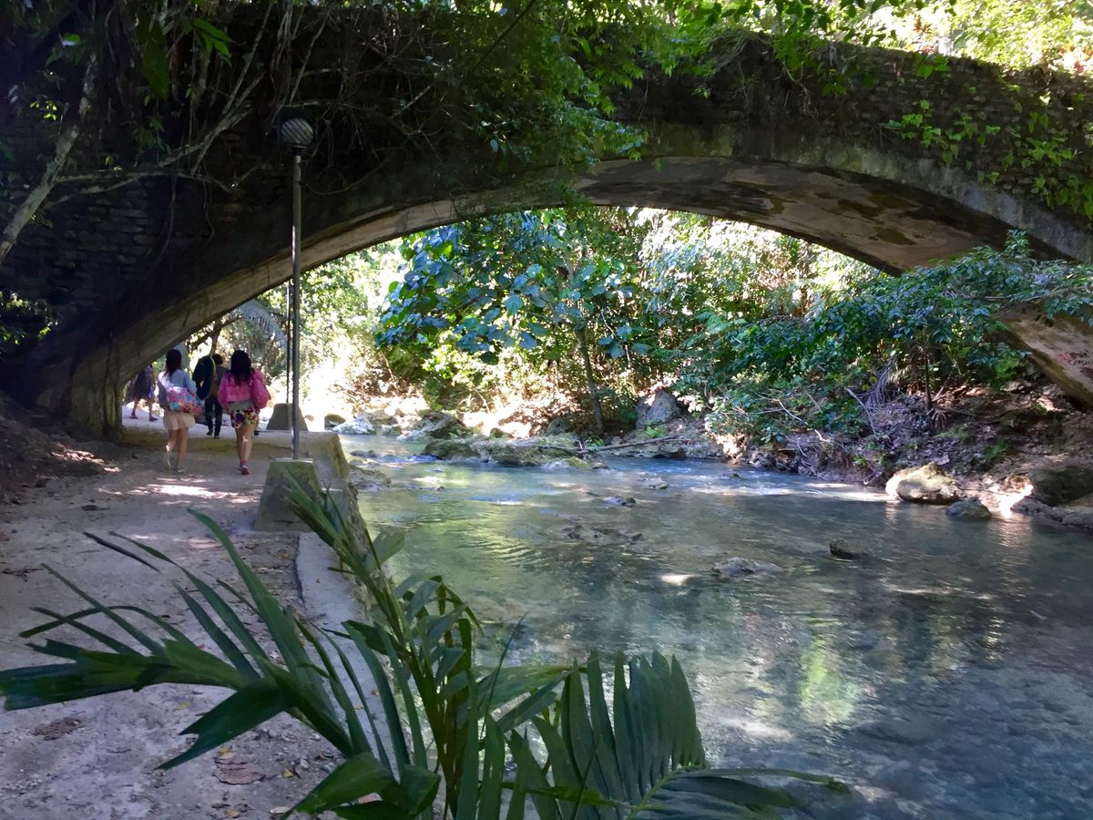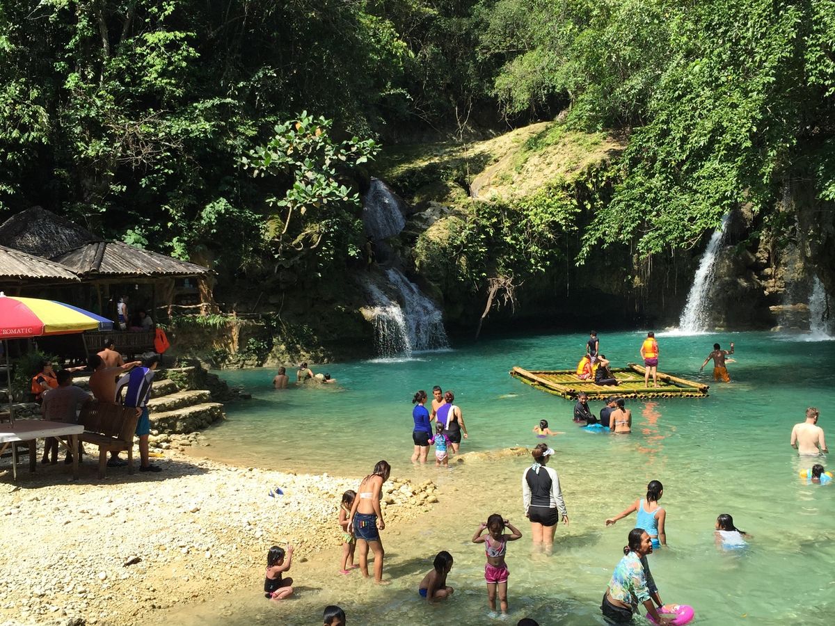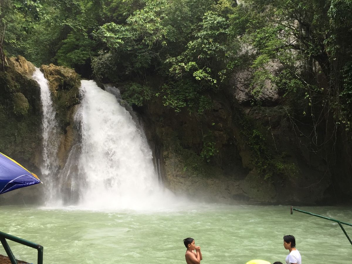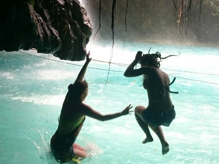 いよいよカワサンホールに到着です!大きな滝と綺麗な水、圧倒されました。私たちが参加した日は土曜日だったので地元の方で賑わっていました。