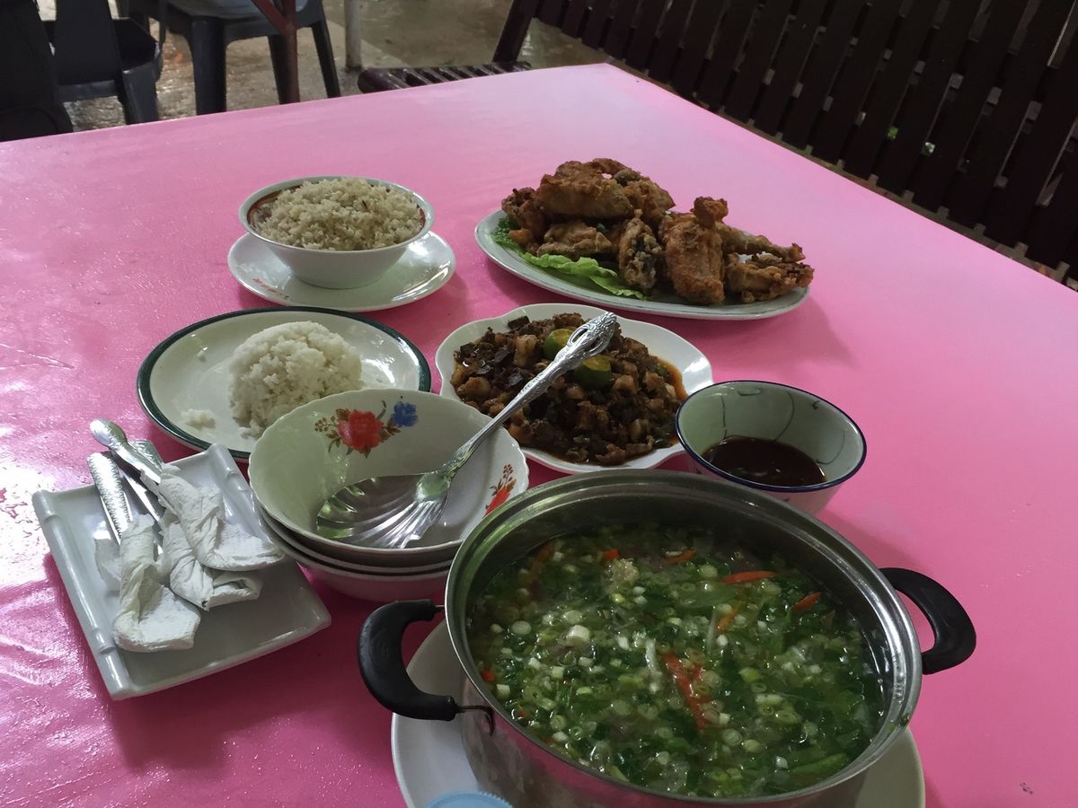 次は、ラシアンへ。思っていた以上に、地元の方々で賑わっていました。似たような屋台が40店舗ほど立ち並び、豚・鳥・魚をおいていますが、大体置いてる物と値段は大体同じだったのであとは席が空いてるかどうかです。フォークは無くビニール手袋を付けて手で食べました。