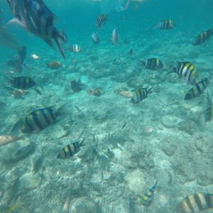 透明度の高い水中でたくさんの色とりどりの熱帯魚やサンゴなど、まるで水族館の中にいるような感覚になります。