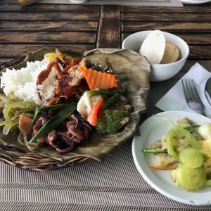 まるこげのチキンとサテーを食べさせられた挙げ句、有料の80ペソもする水を購入させられます。