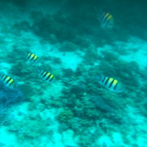 その後、ナルスアン島に、上陸して、ビュッフェのランチが、美味しい❣️ フリータイムに、桟橋近くで、シュノーケリングしたら、コレが、もう、お魚ダラケ‼️ 現地スタッフが、たくさん写真撮ってくれまして、感激!