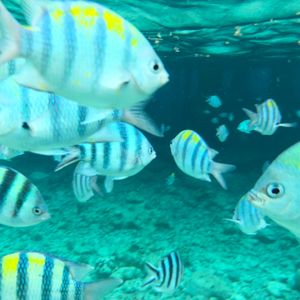 あまり泳ぎが得意ではなく不安だったのですが、スタッフさんが嫌な顔1つせず、終始手を引いてくださったり、リラックスできる様に話しかけてくださったりして、とても楽しめました。お昼は、あまり期待しない方がいいかもしれません。ただ景色は、最高に綺麗なのでとても癒されました♡また行きたいです!船に乗る時間(特に帰り)が長いので酔い易い方は、酔い止めがあるといいかもしれません。