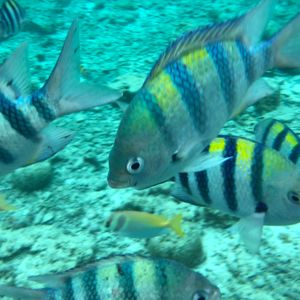 7歳の娘はシュノーケリングとても楽しんでいました。5歳の息子は浮き輪でプカプカ浮いて楽しんでました!ナルスアン島でもシュノーケリングしました。海に顔をつけなくても、魚が見えて息子も喜んでいました。