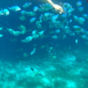 前夜が土砂降りの雨☔️。どうなることか?中止?やきもきしてたら、朝の7時半頃に、やっと上がりかけて、予定通り、8時20分にお迎えが来ました。皆さんの感想の通り、迎えのスタッフも、同行のスタッフも、とってもフレンドリーで、明るいから、悪天候を忘れさせてくれました(^O^)。ヒルトゥガン島に着く頃には、すっかり雨も上がり、島の手前に、ボート留めて、7人の客と、3人のスタッフで、早速シュノーケリング。スタッフが、底に潜ったり、皆んなで魚にエサやったり。スタッフの日本人若者ショータ君が、私のiPhone8、簡易防水ケースで、撮ってくれた動画が、バッチリ。