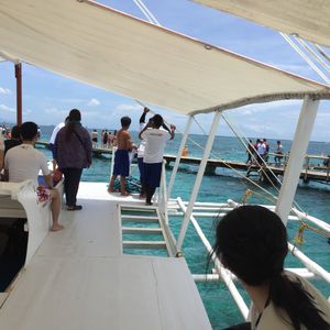 初めてのセブ島アイランドピクニック行って来ました!日本からのネット予約だったので、お迎えが来てくれるのか若干不安でしたが、予定通り朝8時にワゴン車でお迎えに来てくれました。ガイドさんから簡単な説明を受けてさっそく船でヒルトゥガン島沖へ。初のシュノーケリングでしたが、ガイドさんも親切で海がメチャ透明でキレイでカラフルなお魚も色んなお魚がいっぱい!エサのパンをあげると手にいっぱい小魚が来て楽しかったです。