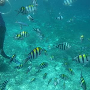 ピックアップも時間通り、笑顔が素敵なガイドさん、最高の天気に恵まれました!ヒルトュガン島では、沢山の種類の魚達と遭遇することができました!ガイドさんが準備してくださったパンをあげると魚達が寄って来ます!ナルスアン島では、さらに魚達がいて、エサを持っていると、怖いくらい魚達が寄ってきます!ランチは水上のレストランで眺めが最高でした。ありがとうございました!