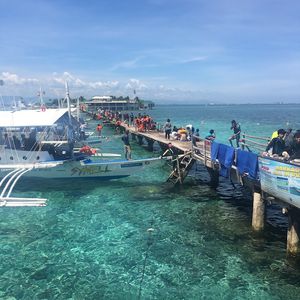 2018年3月下旬に利用しました。 まず、ホテルのピックアップ時間には遅れることなく来てくれました。 しかも送迎車がジプニーでした。 セブは初ですし、英語もほとんど話せないので、地元の乗り物のジプニーに乗るのは諦めていただけに嬉しかったです。 しかもスタッフの方がきちんとジプニーと記念撮影までしてくれました。 ツアーのほうですが、ヒルトゥガン島付近でのシュノーケルは潮の流れが速くて大変でしたが、透明度は高く、魚はたくさんいました。 その後、ナルスアン島に上陸して昼食でしたが、バイキングスタイルで量もあり、種類もそこそこあって(別日に参加した別のアイランドホッピングのツアー会社と比較して)満足でした。 又、ナルスアン島でのシュノーケルも最高でした。 ナルスアン島到着時、シュノーケルするところが最初は中国人で激混みでしたが、同乗しているツアー会社アクアダイブのオーナーさん(店長さん?)が「13時すぎたらガラガラになります」ということでしたが、本当にその頃には空いて十分シュノーケリングを堪能できました。 この方は日本人で、若いのにしっかりしていて、とても感じが良い人でした。 島へ到着時等の行程の説明時も、船にまばらに乗っている乗客ひとりひとりに伝わるよう、自分が移動して何度も説明をしていたのが好感が持てました。 あと、なんといっても現地スタッフの人が非常に親切でした。 シュノーケリング時は家族・グループ毎にひとり現地スタッフが付いてくれるのですが、シュノーケリング時にも進んで写真を撮ってくれたり、魚がいるポイントを教えてくれたり、一番下の子供が6歳の女の子でしたが、シュノーケリング中は常に付いてくれていました。 しかも子供を見ててあげるからパパママもシュノーケルを楽しんで、という心遣いまでしてくれました。 又、船の乗り降りの際は、簡易的に一本橋を渡して乗船、下船するのですが、そのスタッフは常に子供達に本気で気を配ってくれていました。 その素晴らしいスタッフの名はマリオ!本当にありがとう! 他の現地スタッフのクルーもみんな親切で、クルー同士も和気あいあいで楽しそうでした。