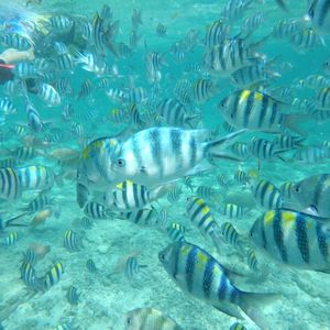 シュノーケリングは ホントにたくさんの魚を見ることができました。ヒルトゥガン島はスケールが大きく いろんな魚が見れます。 私の個人的な感想はナルスアン島の方が規模は小さいですが 浅瀬で その分 まじかで魚を見れます。まさに触れるくらいのところ。すごく良かったです。昼食も美味しく 海もキレイ。スタッフも気さくで楽しい1日になりました。