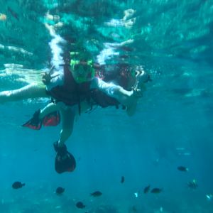 シュノーケリングははじめてで、カナヅチなので大丈夫かな?と思いながらの参加でしたが、ライフジャケットとファンを貸していただいたので、プカプカ浮かびながら気持ち良く参加できました。