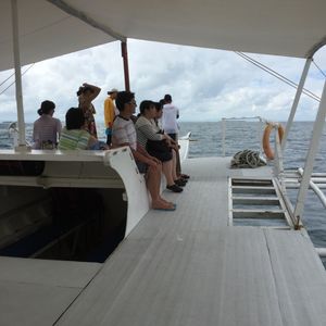 最初のヒルトゥガン島ではクマノミを見ることが出来ました。たくさんの魚がいて楽しかったです。次のナルスアン島でのビュッフェはマンゴーばかり食べていました。飲み物は1本無料でしたので無難にお水を頼みました。こちらでのシュノーケリングは同じ魚がいっぱいで個人的にはヒルトゥガン島の方が楽しかったです。ホテルからの行き帰りはジプニーに乗ってみたかったですがホテルによって違うようでバンでした。スタッフの方達はとても親切で子どもさん連れでも面倒見てくれるので行きやすいと思います。防水カメラ持参したので写真をたくさん撮って貰いました。日本人スタッフはイケメンでしたよ。