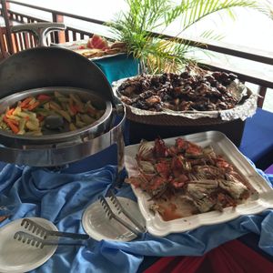 ナルスアン島でビュッフェ形式の食事。ワンドリンクサービスで付いてきます。