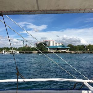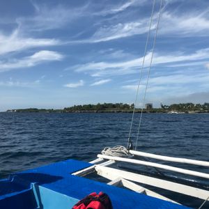 迎えの車でマクタン島の港まで向かい、そのまま船でシュノーケリングの場所まで行くので、水着にビーチサンダルで参加したほうが良いです。幸いくらげはいませんでしたが、暑くて天気の良い日だったにもかかわらず、海に長く入っていると寒くなってくるので、長袖のラッシュガードがお勧めです。