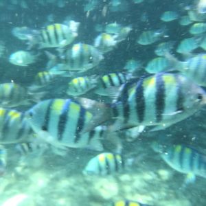 、シュノーケリングはエサ用にパンをもらえるので魚がすごく寄ってきますが、ナルスアン島で昼食後に潜った方が水族館で泳いでるみたいでオススメです!