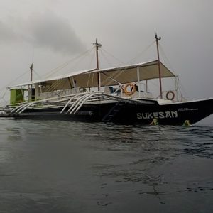 マクタン島Jパークホテル近くから、小さい船に乗り、沖で大きな船に乗り換えます。板で渡してあるので注意が必要でした。また