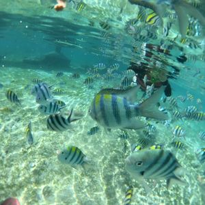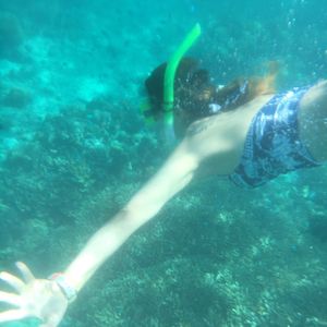 快晴快晴!ナルスアンとヒルトゥガンにいきました!!!!アイランドホッピングを一番の楽しみにしてました!!朝集合時間前からホテルのしたに日本語の話せるガイドさんが来て、待ってくれてました。8人くらいでごー!セブシティのホテルに滞在してましたが、すぐにつきました!!小さいボートから大きいボートに乗り換えるのが怖かった!笑シュノーケルスポットまでの間、写真を撮ったりボートの前の方に行って足を下ろしてみたりして楽しむことが出来ました!日本人のスタッフのお兄さんがよかったです!ただ、他のツアーもあって乗り合いなのかな?とおもいました!!そして、到着してまずはヒルトゥガンでシュノーケリング!パンをあげるとどんどん魚が近寄ってきました!!!感動です!!その後は有名なナルスアン島でバーベキューではなくバイキング?のランチを頂きました。クチコミ通り、バーベキューはないのかなー??マンゴーが美味しかった!!!!ナルスアンでは、再度シュノーケリング!!もっといたかった!!!とてつもなく魚がいるので若干怖かったけど、とても良かったです!!!シュノーケリンググッズはかしてくれます!フィリピン人の方は人懐っこくて、写真もたくさんとってくれました!!!!泳ぎがうまい!!