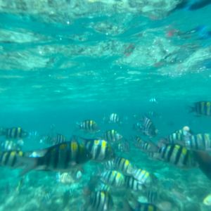 シュノーケリングをした日がかなり強風でちょっと魚の撮影に気を取られると船二個分流されてて焦りましたがガイドさんがそれぞれのグループに1人ついてくれていて常に浮き輪を持って近くに居てくれます。私たちが参加した日は浮き輪につかまっていないと流されてしまうのでずっとお世話になっていました。魚の多いポイントがあると教えてくれて撮影のタイミングも教えてくれます!途中大きな魚が居た時には撮影がしやすいように向かってくれます。シュノーケリングは普段しますがフィンを使ったことがなくてそれが難しかったです💦ランチはナルスアン島でいただきましたが比較的全部味は薄め…。風が強い日は曇りの日は寒いくらいなので羽織りものは絶対あった方がいいです。