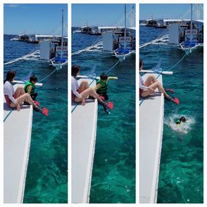7歳の子連れで行きました。とても優しい日本人女性がお迎えに来て下さり、ずっと最後まで付き添って、始終優しく対応して下さいました。その時点で非常に安心しました。また、息子がかなり慎重なタイプで、上陸しない船からダイブするシュノーケリングは出来るか不安でしたが、やれ目に水がー、足のヒレが取れたー、しまいには鼻血を出すなど、世話の焼ける息子にスタッフさんが水中でもずっと付いて下さり、危険な状況にならないように、でも自由に遊ばせてくれ、素晴らいサポートをして下さいました。10分もしたら息子も慣れ、本当に楽しむ事が出来て、親子で沢山のお魚たち、海の世界に感動!素晴らしい体験となりました。何より始終、安全確保の意識が高い事に非常に安心感を持ちました。水中でずっと私達家族に優しくしてくれたフィリピン人スタッフの方にチップをお渡し出来なかったのが心残りです。とても素晴らしい体験をありがとうございました。皆さんにオススメしたいです。