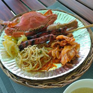 次の島の前で船を止めてBBQ(焼かれたもの)ランチを頂きました。海鮮系やご飯、ビーフン、そしてデザートがありました。盛りだくさんで美味しかったです。