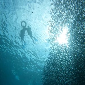 イワシの群れはとても感動的でした。亀さんともすごく近くで一緒に泳げました。
