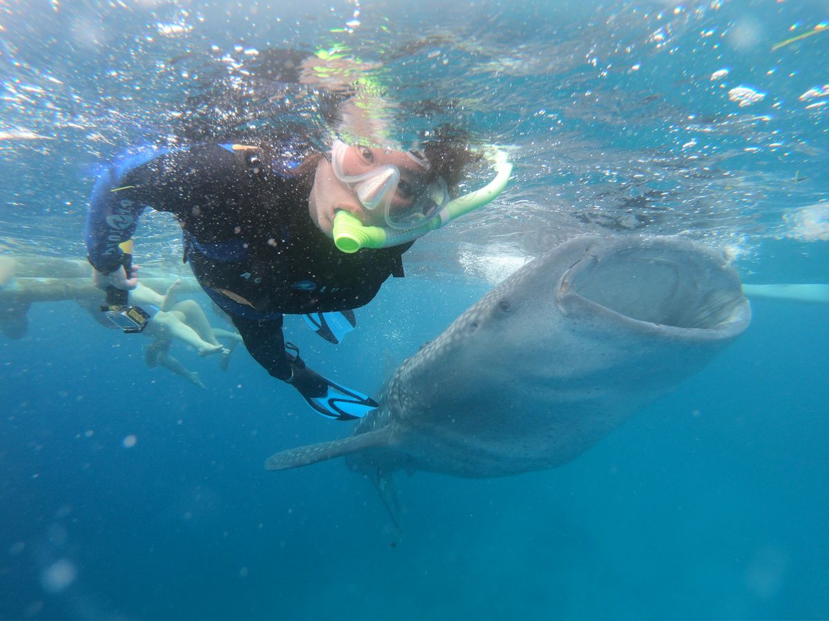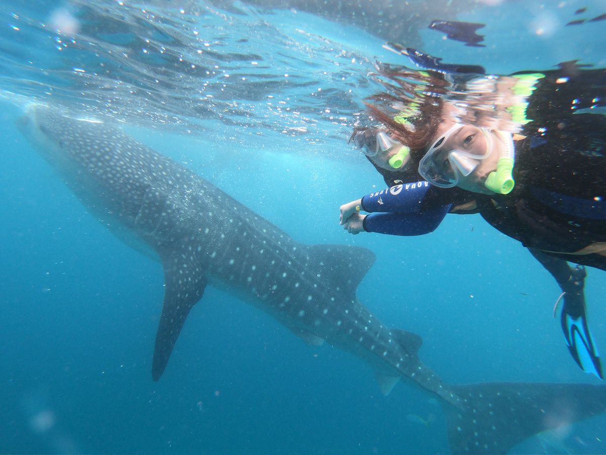 迫力満点で間近でみえるジンベイザメに怯えながらも、一緒に泳ぐ貴重な体験が出来て本当に良かったです。