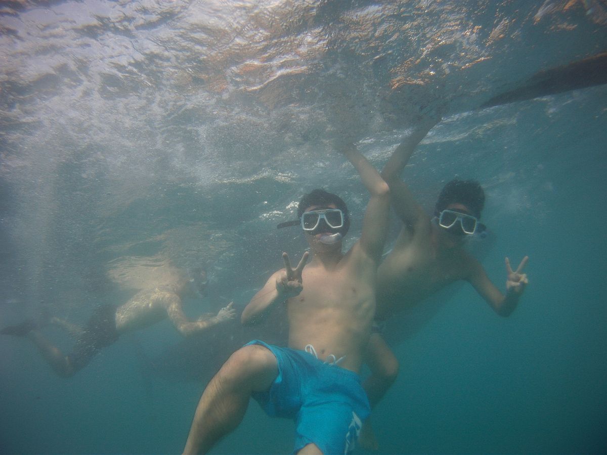 集合はすごく早かったけど、目的地まで3時間かかったので車内でよく寝れた笑。到着後にガイドさんが番号を取ってくれて、順番がくるまで約15分かかった。順番が来たらシュノーケリングマスクぽいっと渡されていざ海え!ボートを乗り約2、3分で到着。降りていいって言われて気持ちよく海へジャンプ〜