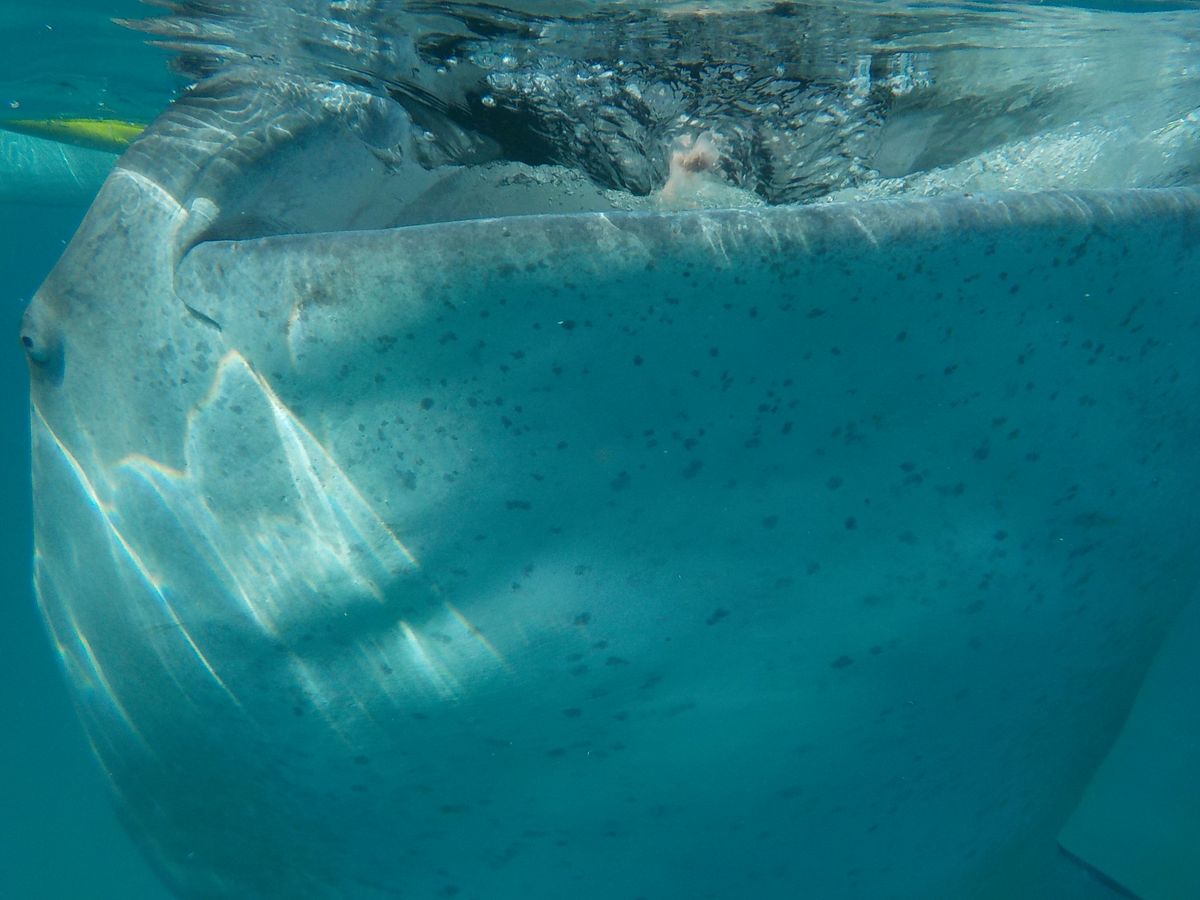 まじかでかっているような感じでしたが、なかなか人間が沈まなく、ジンベイサメとの2ショットが大変でした。