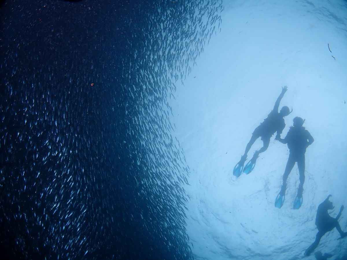 海中では雨のため、多少の濁りがあったのものの、ウミガメとイワシをしっかりと見ることができました。