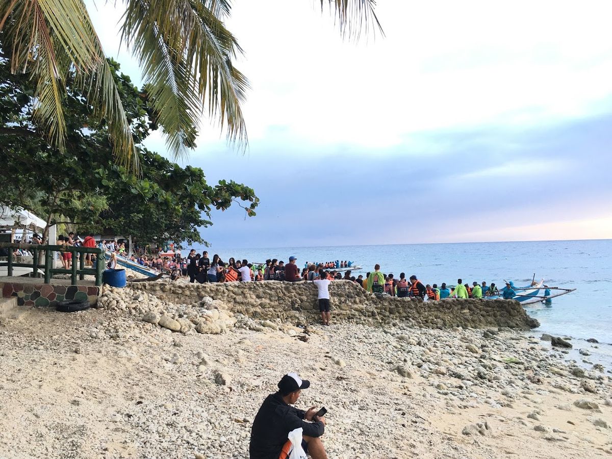 既にたくさんの人がボートに乗るために、ビーチで待機していました。