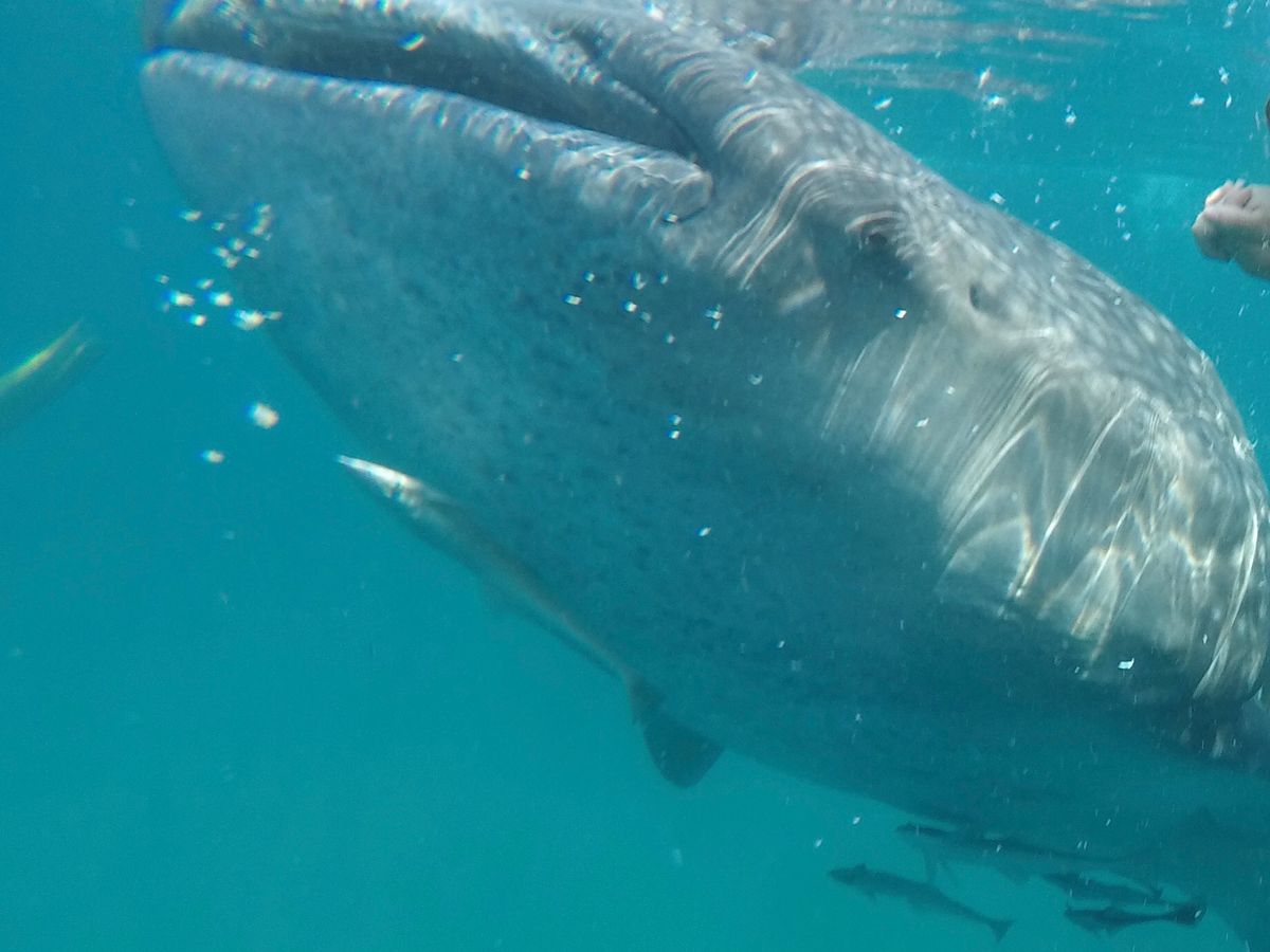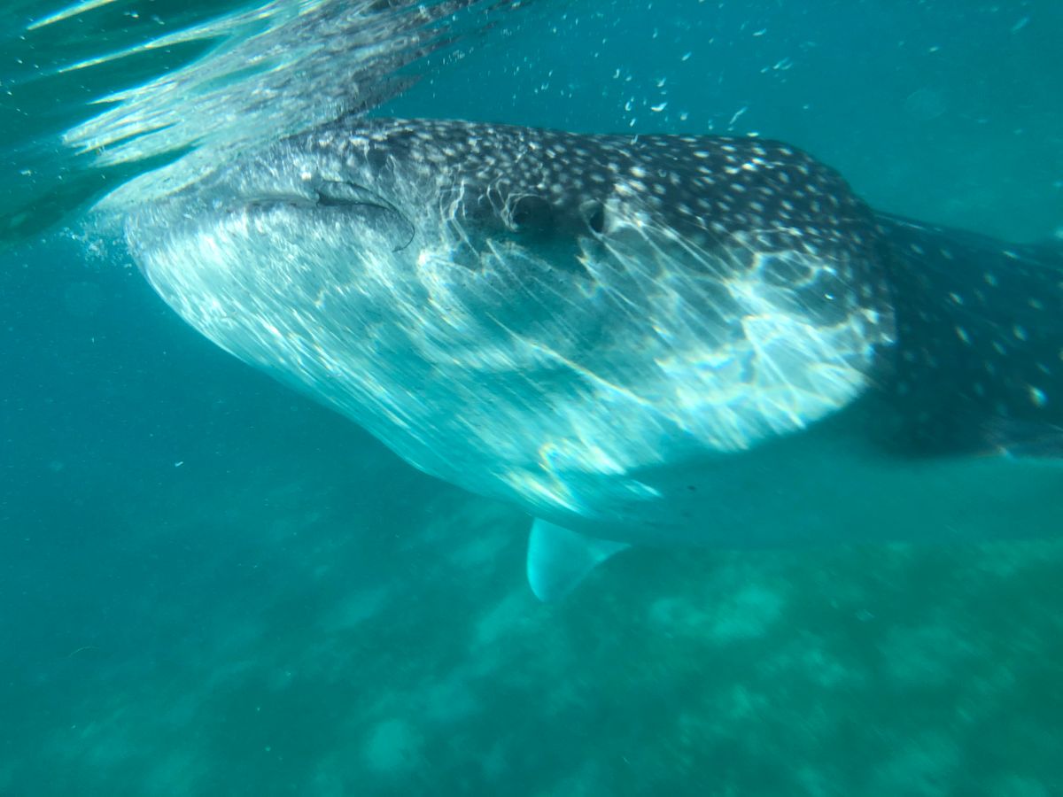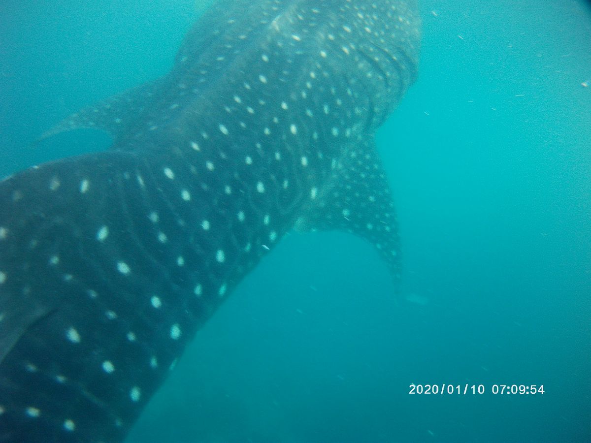 到着すると早速、シュノーケリング。ボートに乗って少し沖まで出て海へダイブ。餌付けされたジンベエザメが手で触れるくらい近くにいて、まさに圧巻の迫力でした。撮影機材は持っていっていませんでしたが、持っていけばと後悔。水中カメラか、iPhoneを防水ケースに入れて持っていけば良かった。