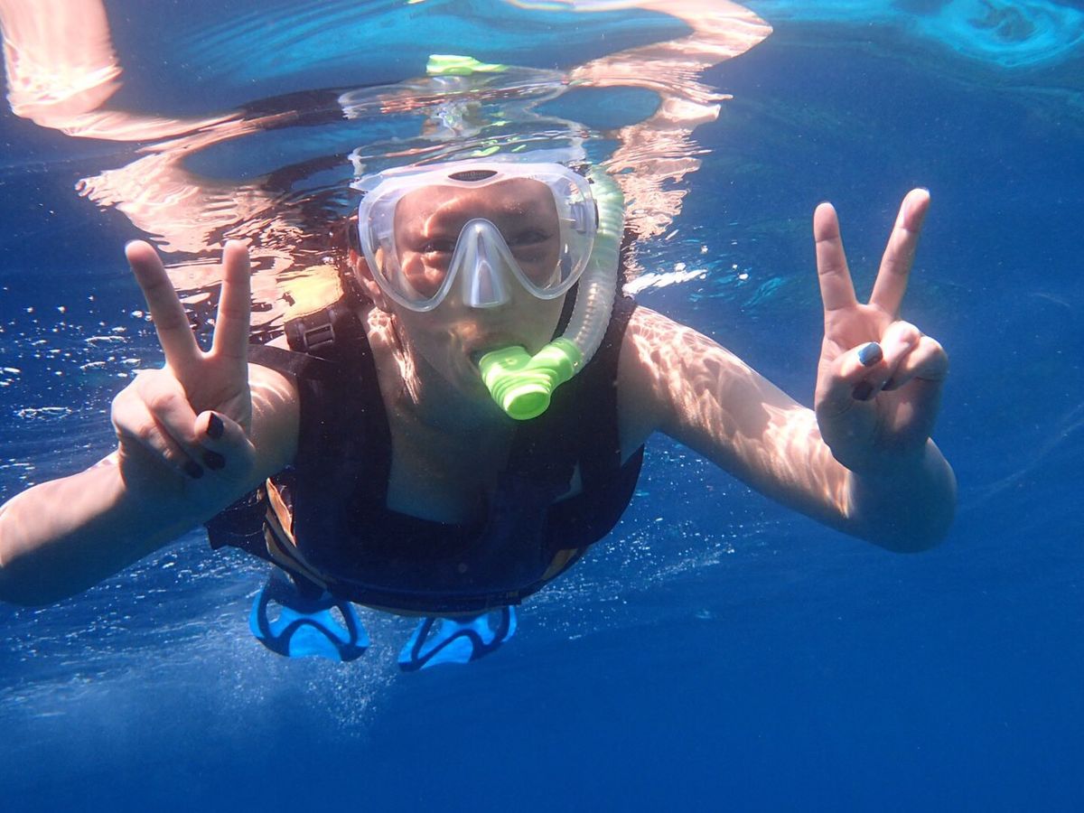 ゴーグル、シュノーケル、フィンを借りていざシュノーケリングへ!