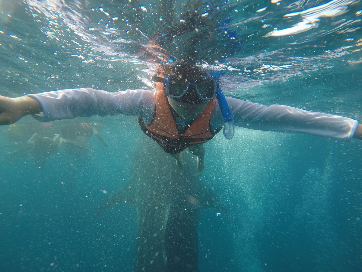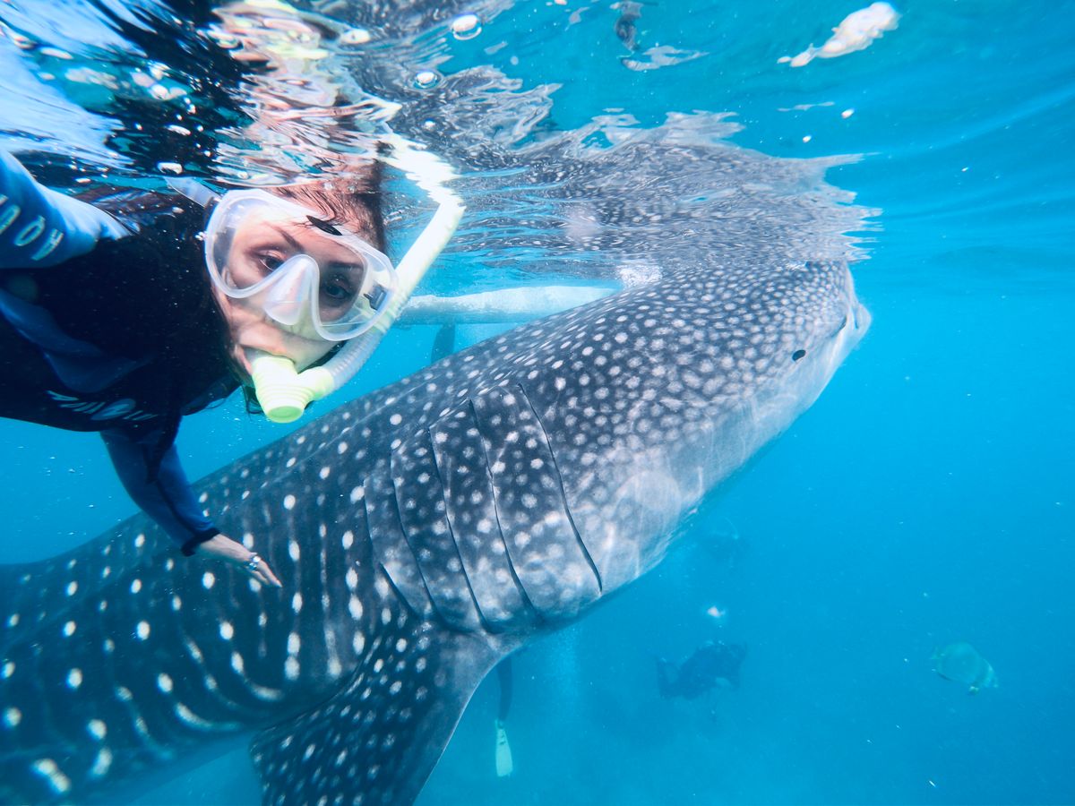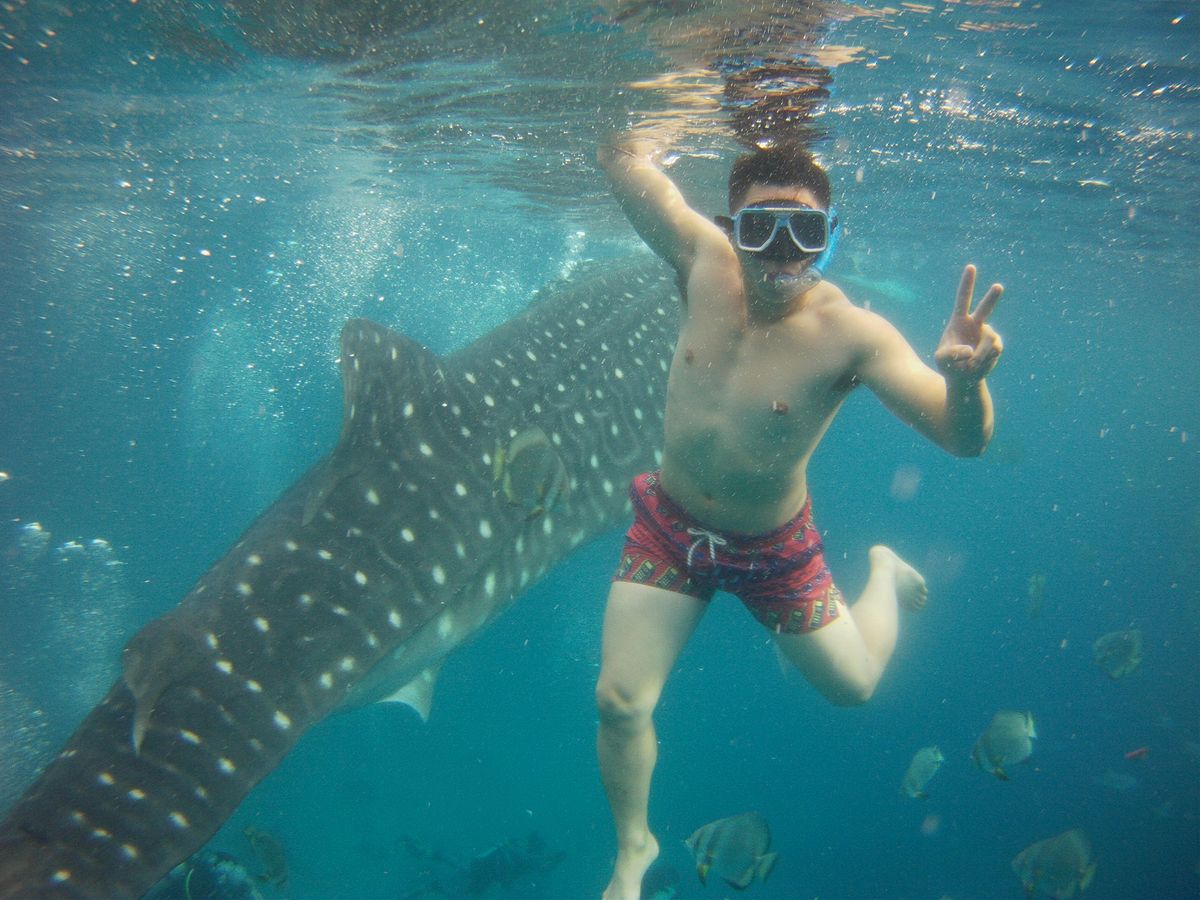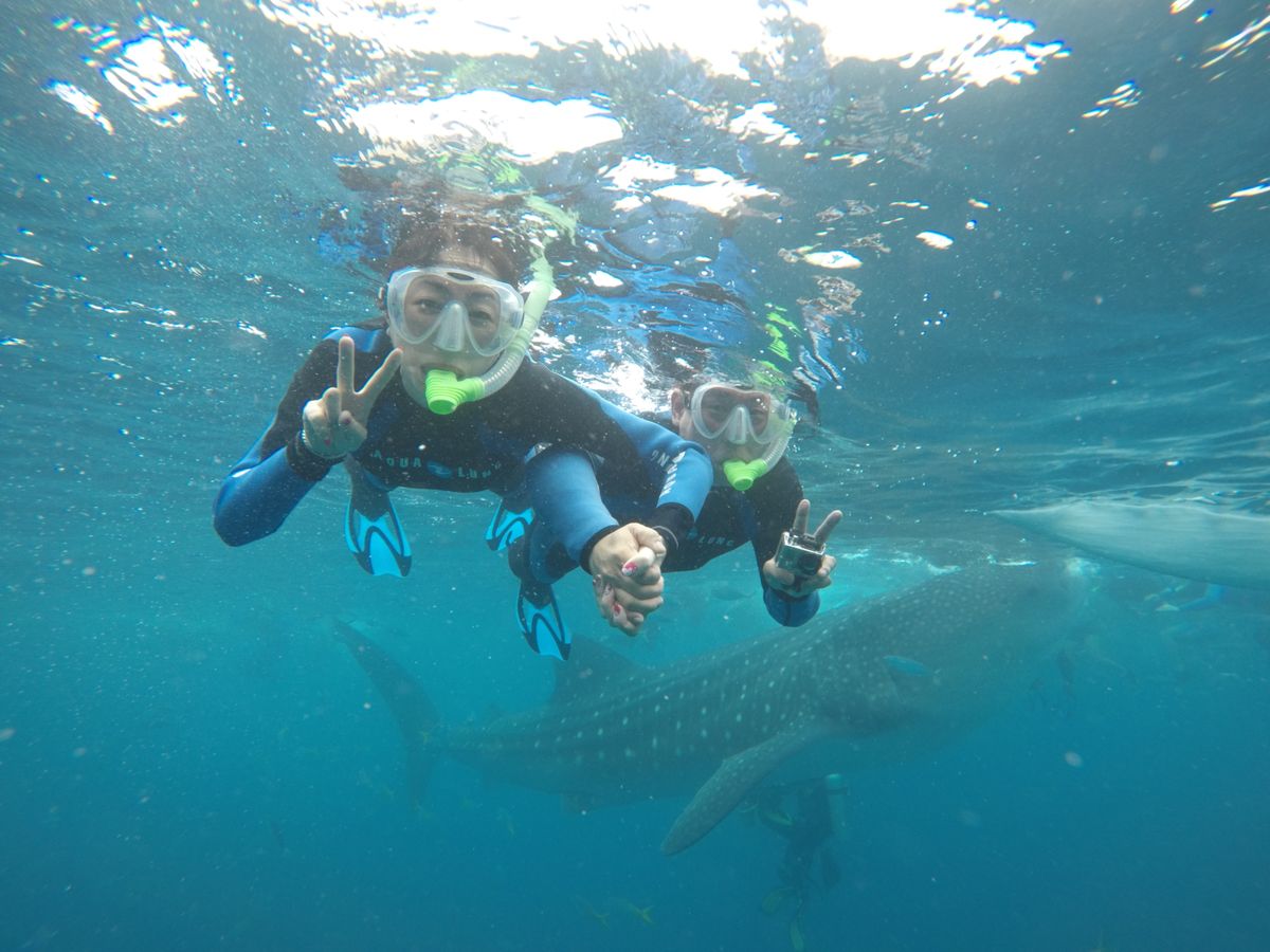 現地の方は慣れてるので上手く撮れるように潜らせてくれるので、シュノーケル初心者の友達も上手くジンベイザメと撮ることができました。