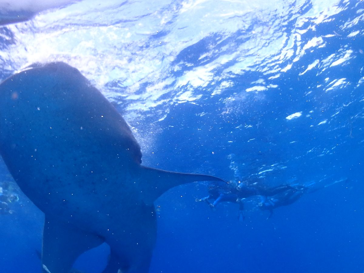 ジンベイザメ ツアーでは、間近で大きなジンベイザメを見て、一緒に泳ぐことができました!