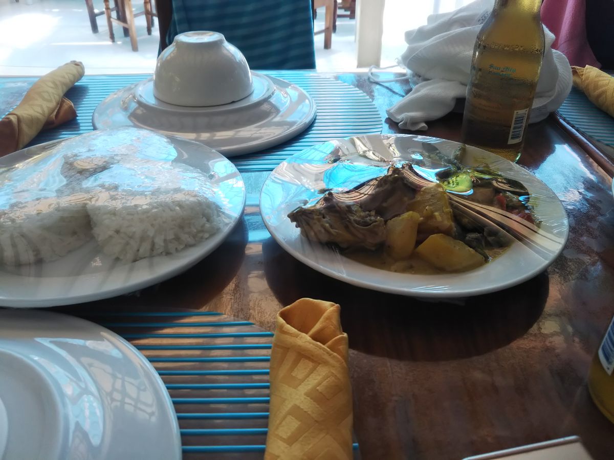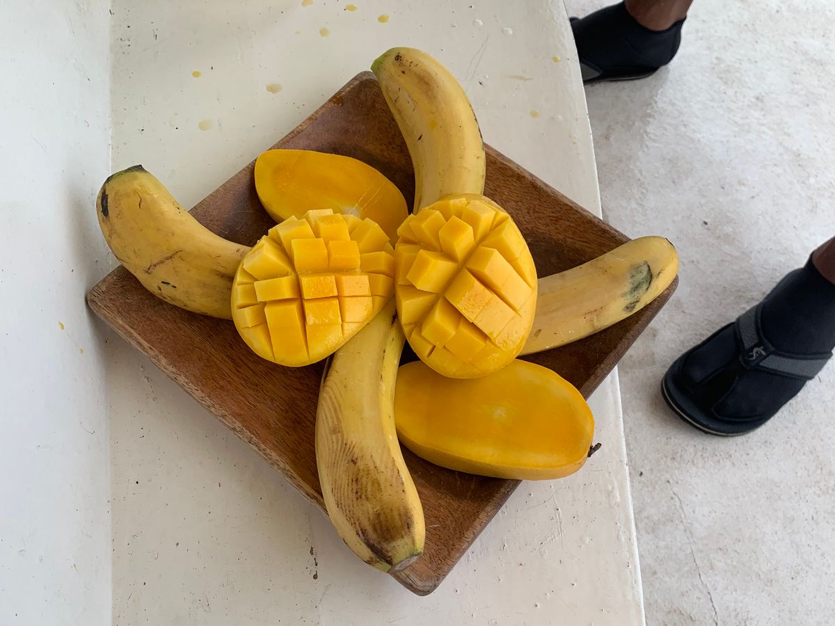 昼食は、フィリピンスタイルの美味しいBBQとフルーツ。BBQの味好き♡マンゴーがあまーい!激ウマです!!!