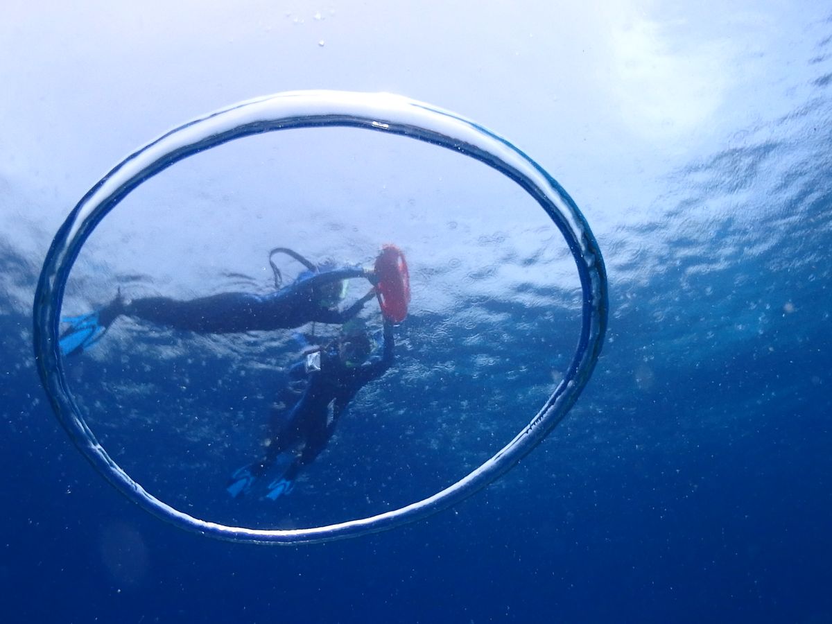 ガイドさんたちも、卑しくチップをねだるような面倒くさい事もなく、陽気で、きさくで、私たちを精一杯楽しませる努力をしてくださいました。水中でのバブルリング(これはわたしが乗ったツアーのガイドさんができるだけ?)を作り、下から写真を撮ってもらえたことはすごくよかった。他では撮れない写真です。