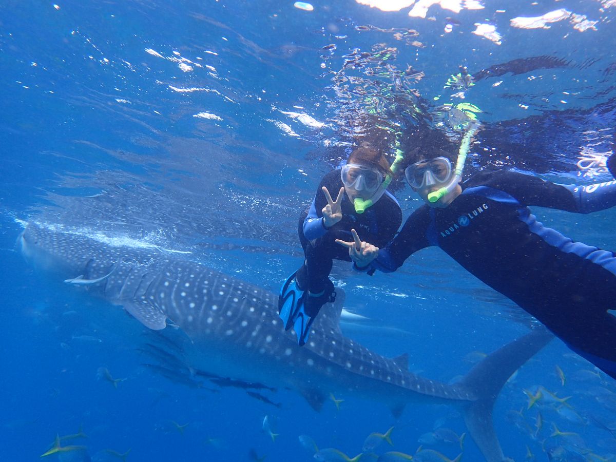 巨大なジンベイザメを間近で泳ぎ見る体験、感動です。