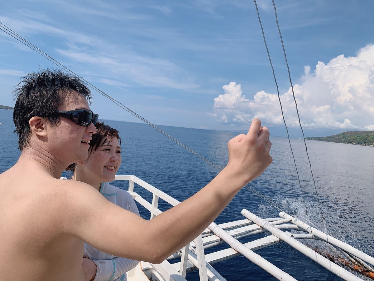 最初は人見知りだった現地ガイドのお兄さんも慣れてきて水を掛け合ったり日本語とビサヤ語を教えあったりして楽しく進めました♪