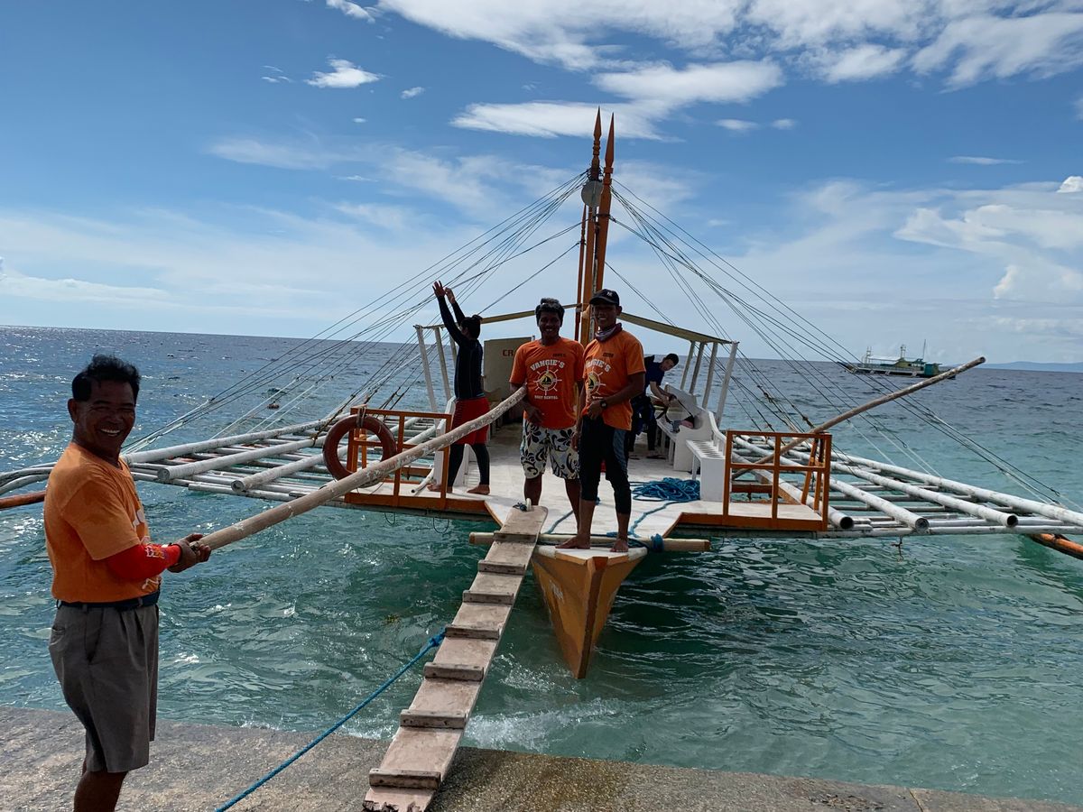 しばらくしてオスロブに到着です。日本を含むアジア系の観光客がかなり多くジンベイザメのあるところまで運んでくれるボートの順番待ち。日陰で待たせてもらえたので特に暑さも感じることはありませんでした。