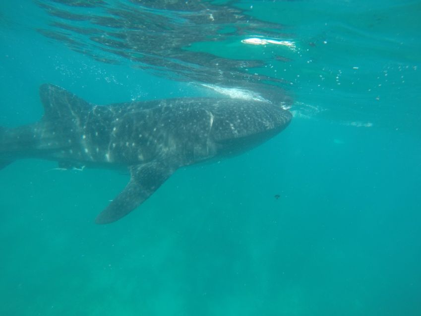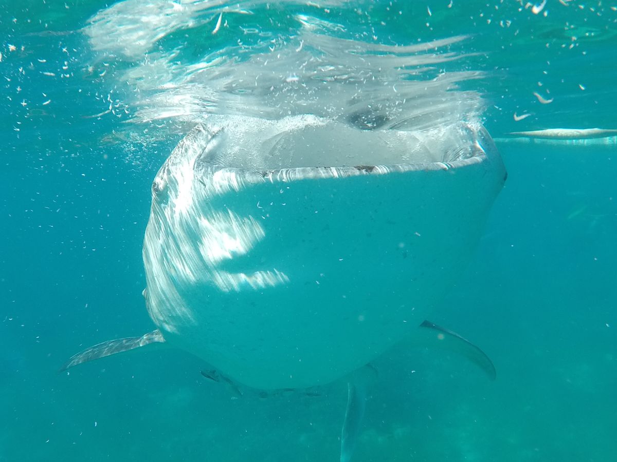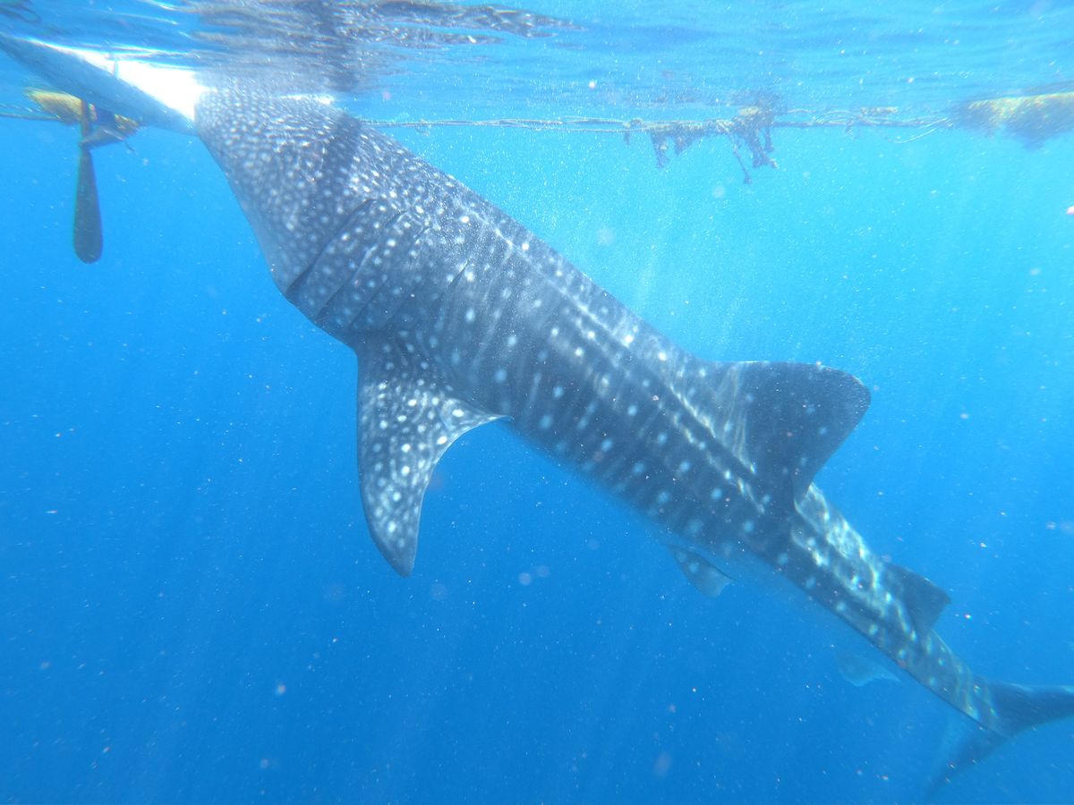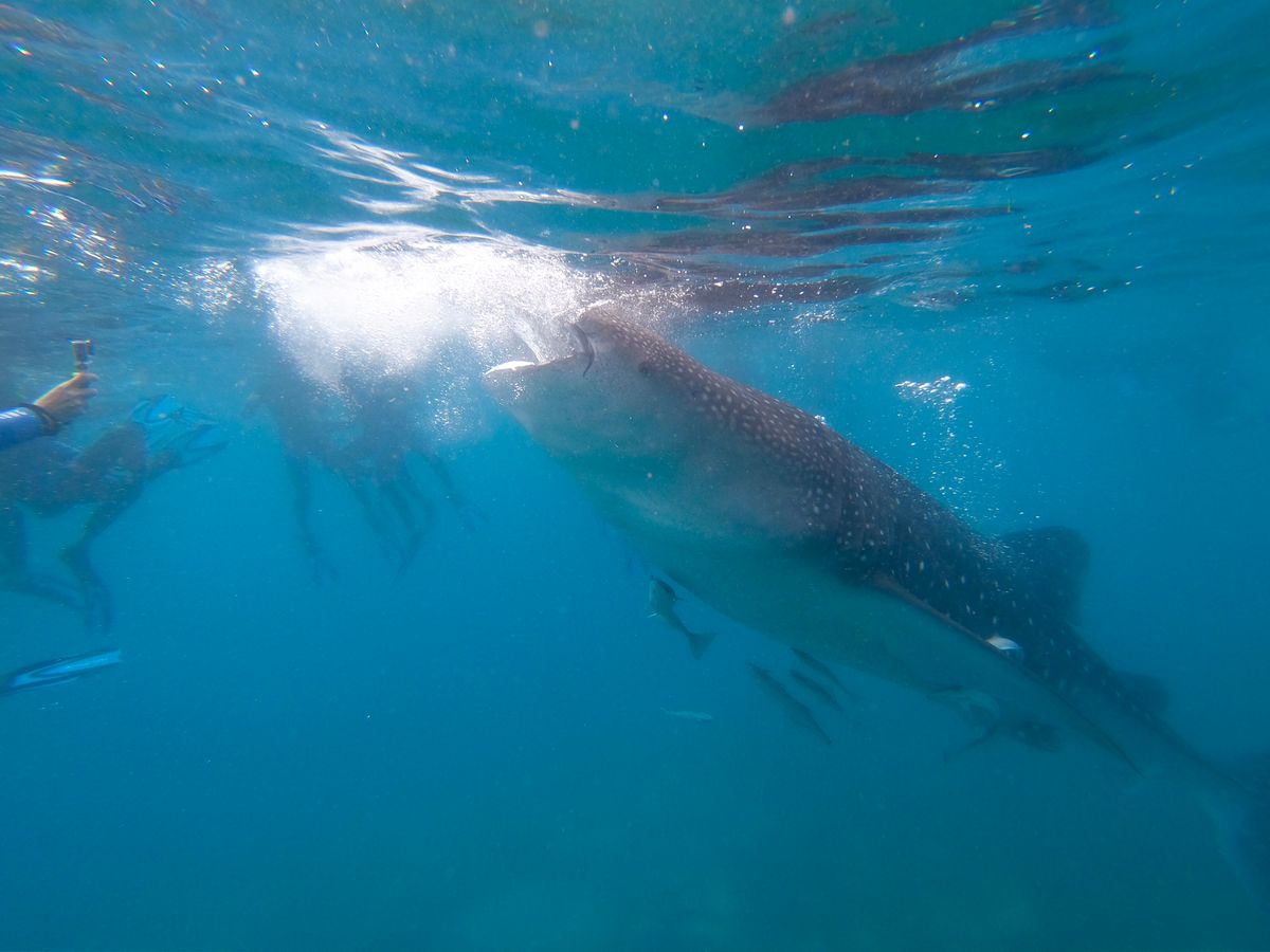 ジンベエザメと泳ぐは、想像以上に近くで泳げます。個人でオスロブ入りして、ジンベエザメを船の上から見てるだけの観光客を横目に、シュノーケリングで海の下の様子まで見られるのは、このツアーの特権かと思います。かなりの時間、近くでジンベエザメ観察ができました。