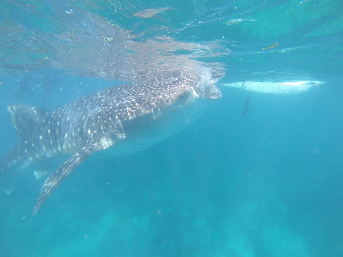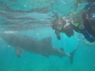 お待ちかねのジンベイザメは本当に間近で見れてとても感動!!船上から見るのと違って、海の中で見るとかなり大きく貴重な体験ができました!