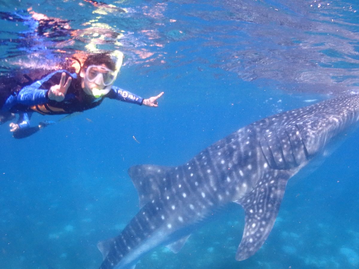 ジンベエザメと泳ぐ感動は、日本では味わうことの出来ない思い出に残る体験だと思います。