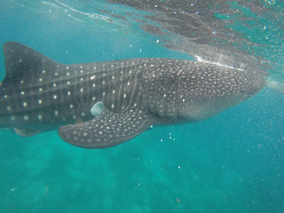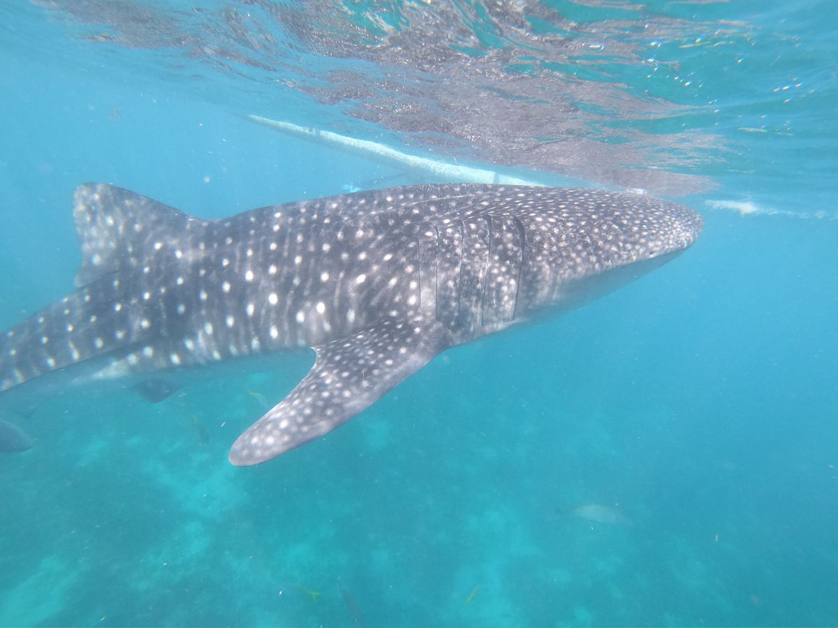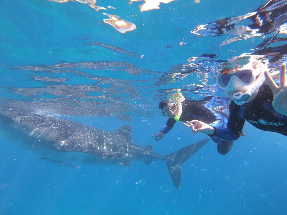 オスロブでは晴天に恵まれ、優雅に泳ぐ何匹ものジンベイザメの真横で泳ぐことができ大迫力でした。