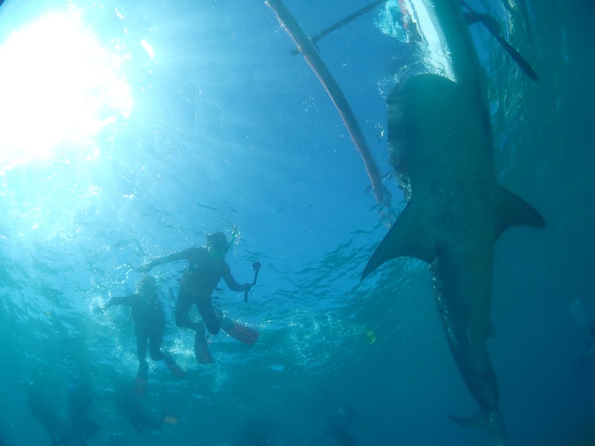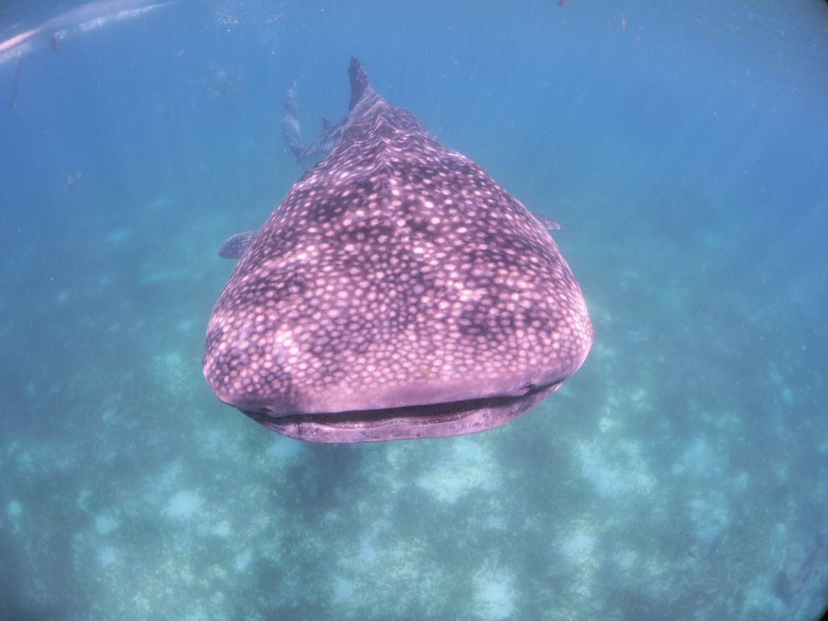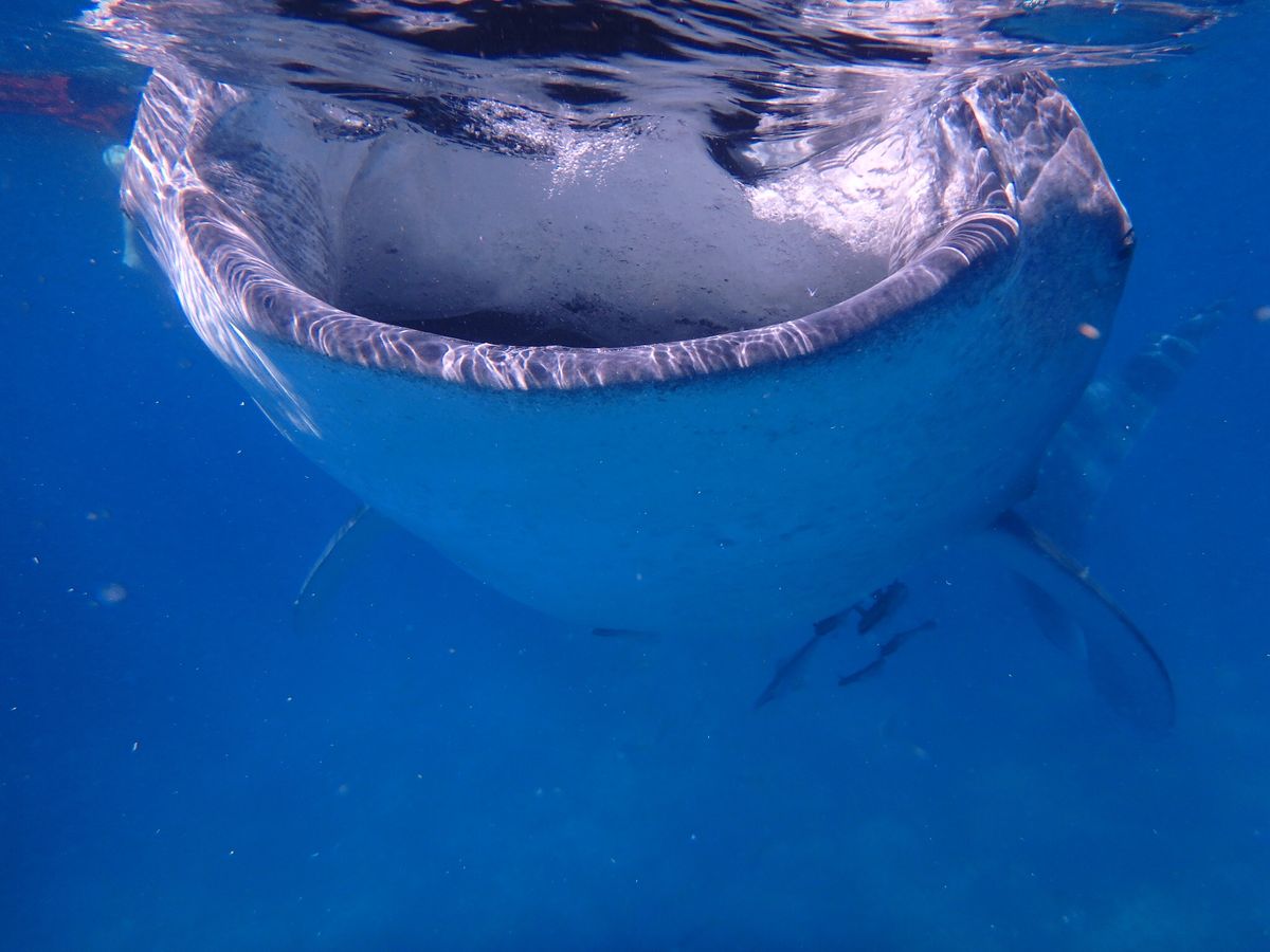 オスロブに到着すると、すぐにジンベイザメと泳ぎに行きました。ジンベイザメの見られるスポットまでは、手漕ぎの船で5分もかからないので、非常に近いです。ジンベイザメが数えられないほどいて、しかもほんの数メートルの距離!!ものすごい迫力でした!