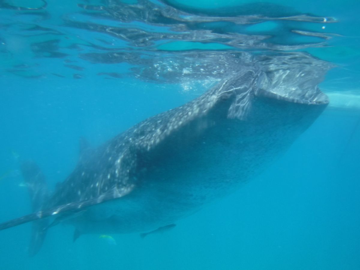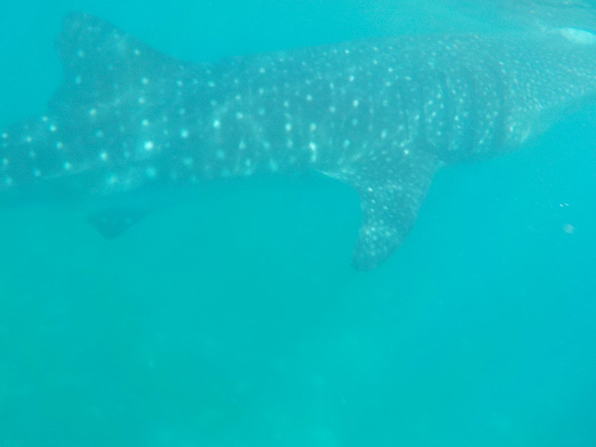 さて,ツアーですが,事前にジンベイザメの4,5メートル以内に近づかないよう注意があったにもかかわらず,ツアー参加者の女性たちのカメラ撮影をアシストしていたフィリピン人男性らは,撮影対象者の女性たちをジンベイザメの近くに行かせ,他の参加者の撮影の邪魔になっていました。他の参加者の撮影もアシストしてもらえるのかと思っていましたが,カメラの持ち込み料250ペソを支払って水中カメラを持参したにもかかわらず他の参加者の撮影はしていただけず,決まった女性のみ撮影していました。(最初に頼んでおくべきだったのか,いったいどういうシステムだったのか,分かりません)そのため,私が撮影した画像のほとんどは,その女性たちの体がジンベイザメと一緒に映ってしまっていました…。また,ジンベイザメとツーショットの写真は一枚も撮れず,大変残念でした。