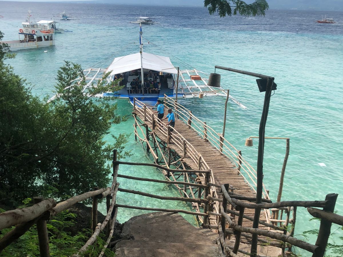 母と参加しました。セブ島は初めてだったのですがとにかく最高でした!ピックアップの時間は少し早いですが、途中休憩所で朝ごはんも買えるので特に心配はいらないです。参加した日は私たちを含め2組だけでした。海辺に着くとまずダイビングスーツに着替えます。船に乗りポイントに着くとジンベエザメのいるところまではガイドさんと一緒に泳いでいきます。私たちのこのツアーだけジンベエザメと並んで泳げました!30分という限られた時間でしたが運が良く2.3匹見ることができました!その後そのままスミロン島へ行きます。白い砂浜の綺麗なビーチで遊んだ後また船に乗りシュノーケリングをします。他の観光客も全くおらず、綺麗で透き通ったサンゴ礁を独り占めできました!それが終わると着替えてランチです。好きなものをあらかじめオーダーしておくシステムでした。ランチの後はツマログの滝へ行きました。途中までは車で行き、最後は現地の方のバイクの後ろに乗ります。これが意外とスリリングで楽しかったです!滝も壮大で水しぶきが結構かかってくる感じでしたが感動しました。こちらのツアーでは少人数で組んでくれているのでガイドさんがたくさん写真を撮って下さります!水中カメラを持っていなくてもジンベエザメやシュノーケリングの写真が撮れるのですごくありがたかったです!いたせりつくせりのツアーなので大満足です!また参加したいと思えるほど素晴らしいツアーでした!