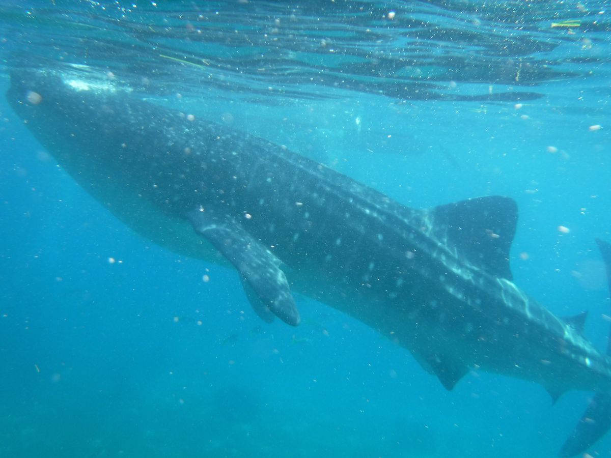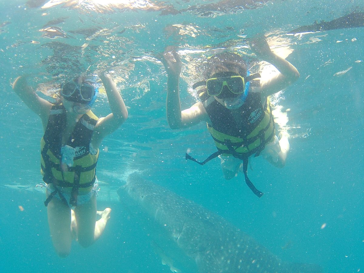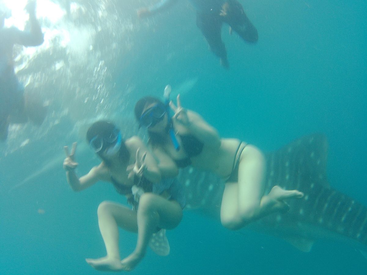 朝6時頃、ホテルに日本語を話せるスタッフが迎えに来てくれました(^_^)片道3時間ほどかかりましたが、途中でトイレ休憩のためコンビニのようなところに行ってくれたし、車で眠れたのでそこまで長く感じませんでした!海に着くとすぐに着替えてボートに乗って、ジンベイザメのところに行きます。ボートの周りに木の柵のようなものがあって、そこを掴みながら潜れるので、泳げなくても大丈夫でした!その日はジンベイザメが10匹程いて、間近でたくさん見ることができました。700ペソ位で水中カメラを借りれて、現地のスタッフがたくさんジンベイザメとの写真を撮ってくれました。データを全てCDに移して貰えます。とっても貴重な経験ができて良かったです!!