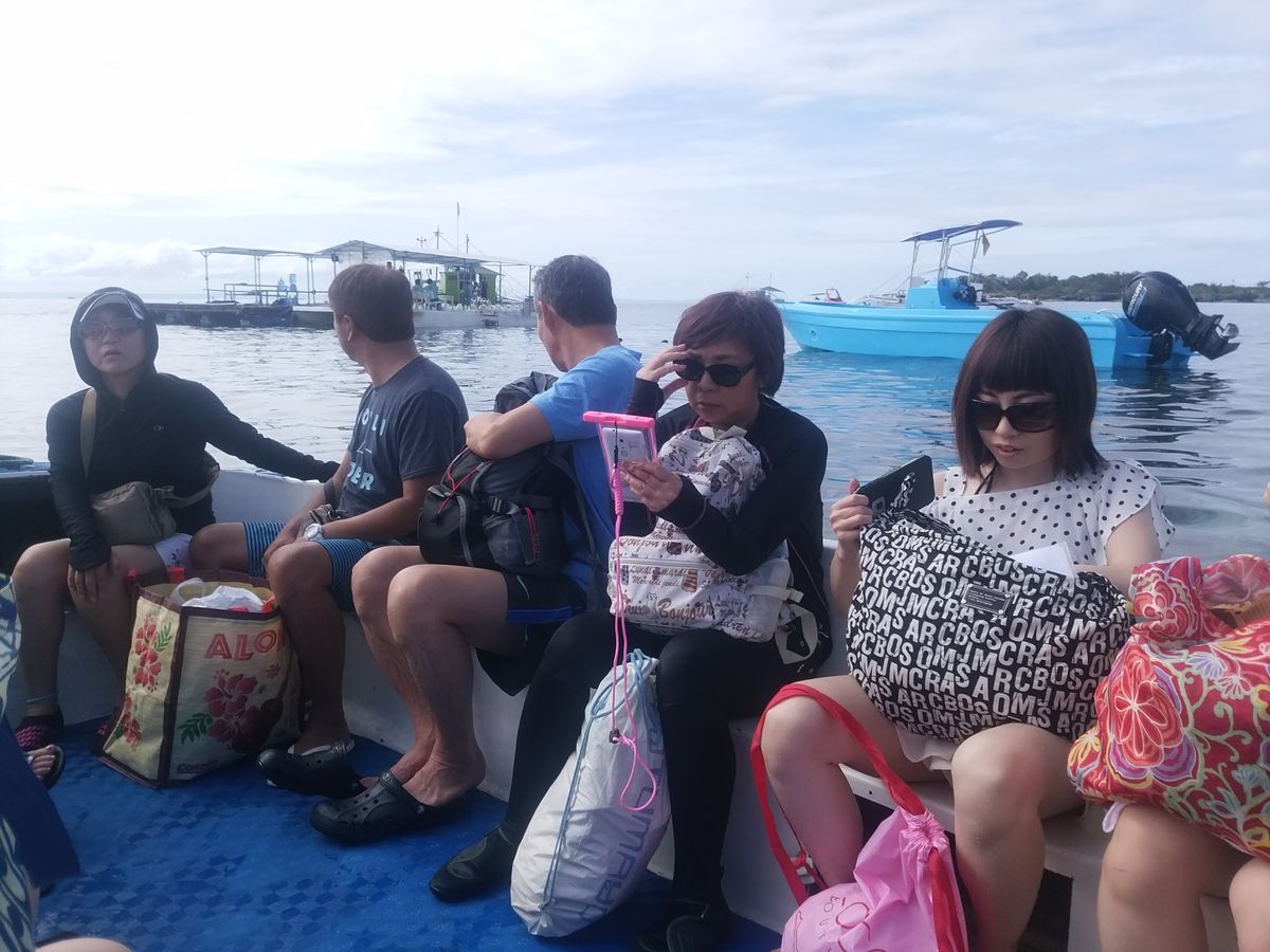 GOproをはいと渡され操作はガイドさんも誰もわからずもたついてしまい、ジンベイザメのボートが団体の方と同じだったため、ゆっくり準備できる雰囲気でもなく、